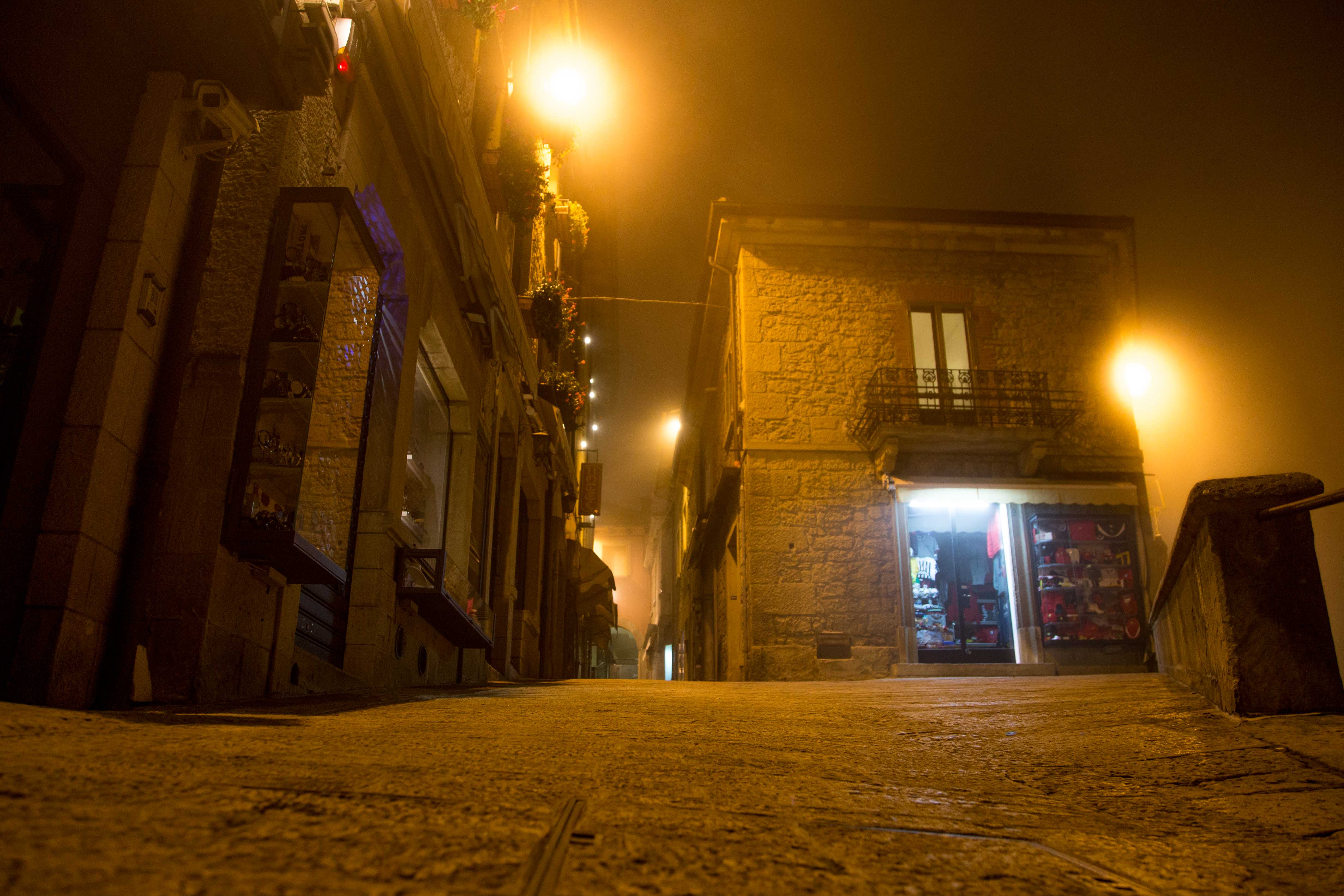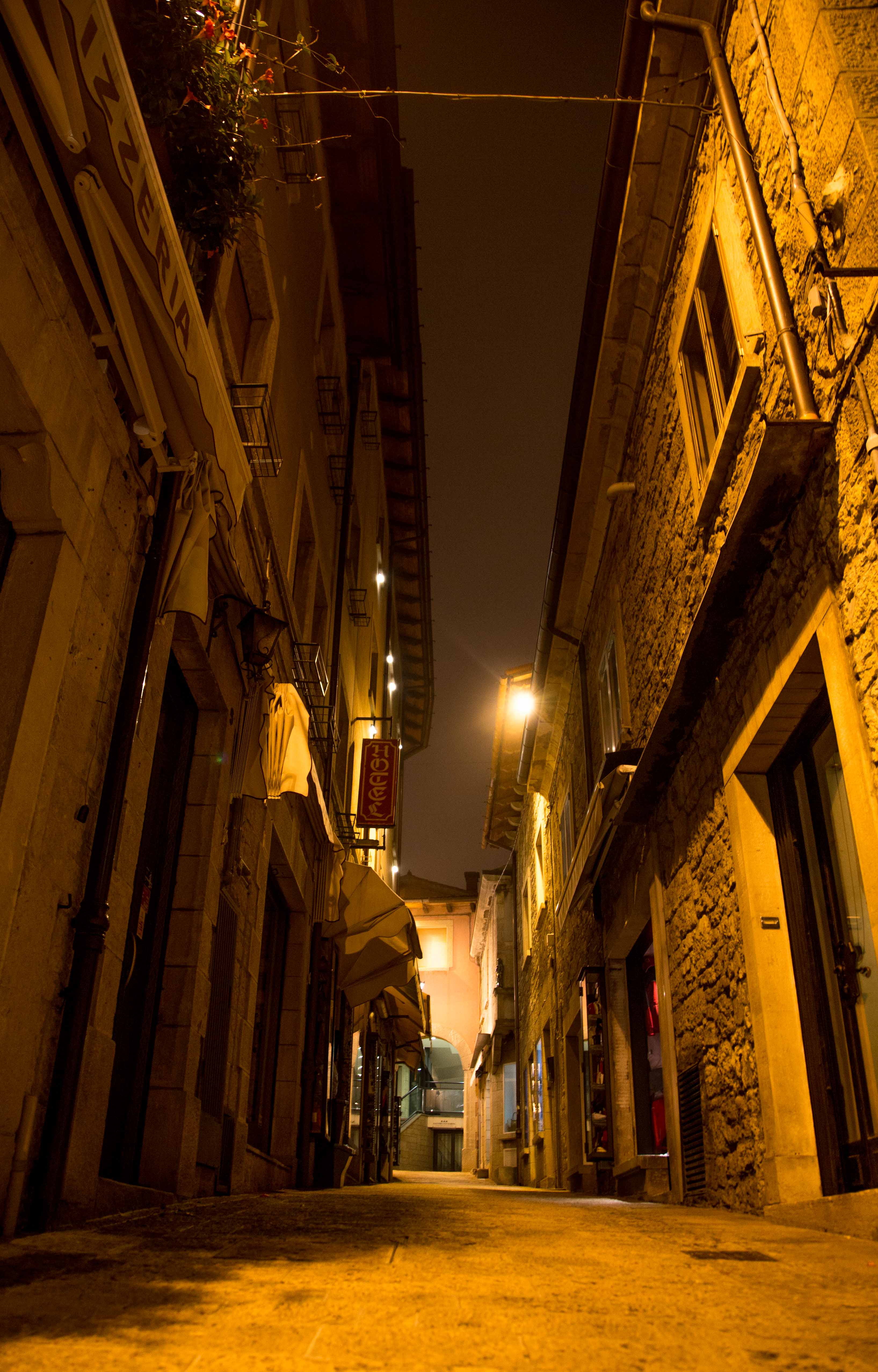 På vägen hem från Italien för några veckor sedan stannade vi till i San Marino. Efter en hisnande färd upp och ner för bergen kom vi tillslut fram till detta fantastiska lilla land mitt uppe på ett berg i Italien. Likt en saga låg dimman tätt och det kändes mystiskt att i mörkret beträda detta land. Vi hittade vårt härliga hotell genom en vandring i dimman. Mystiken var för intressant för att stanna inne så en vandring med kameran i hand var ett måste. Bjuder här på lite härliga bilder från vår kväll i San Marino.