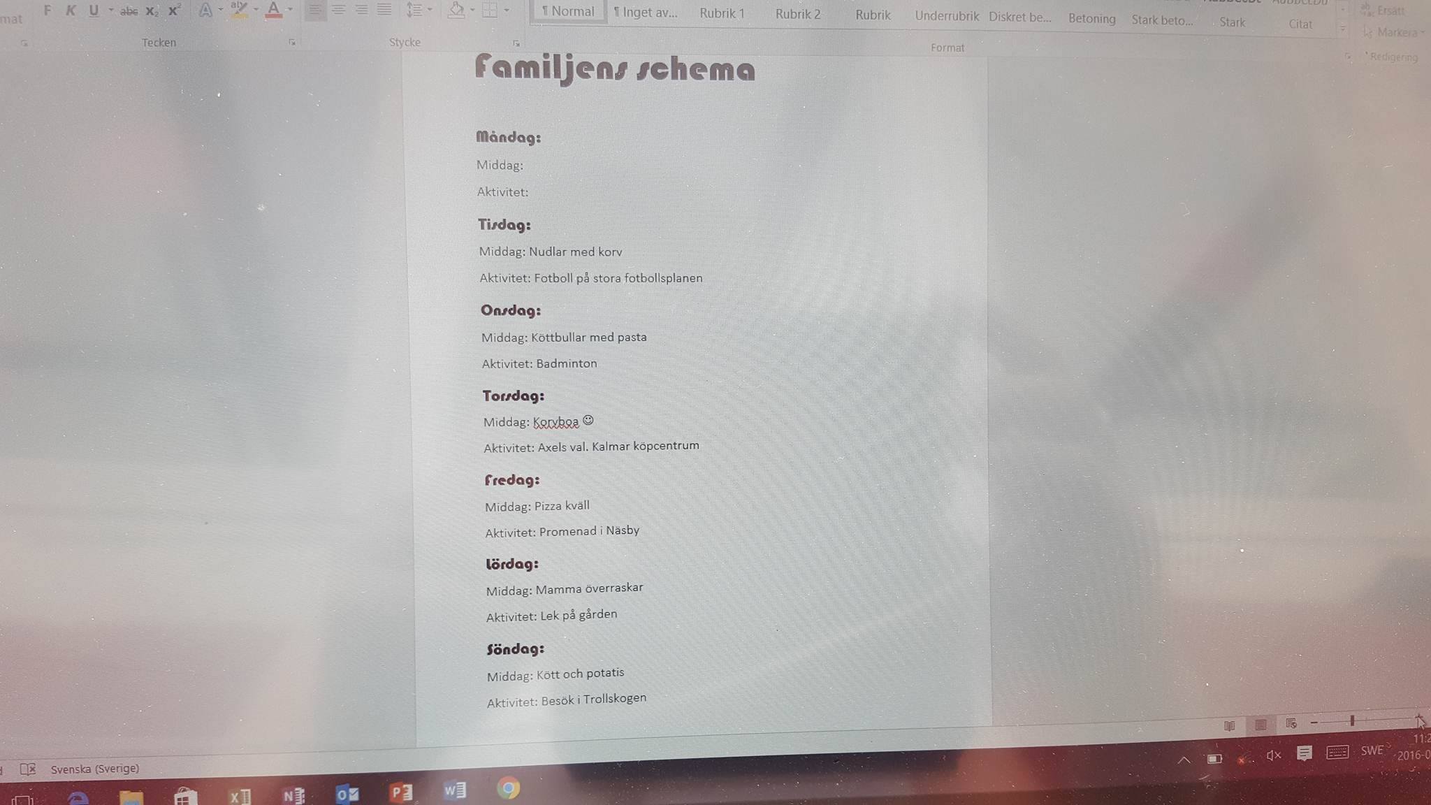 Vad skall vi äta, vilken ute aktivitet skall göras varje kväll och Axels specialkväll. Det mottogs med otroligt mer respons än jag trott. Nu blev det ett gemensamt beslut vad som skall göras.